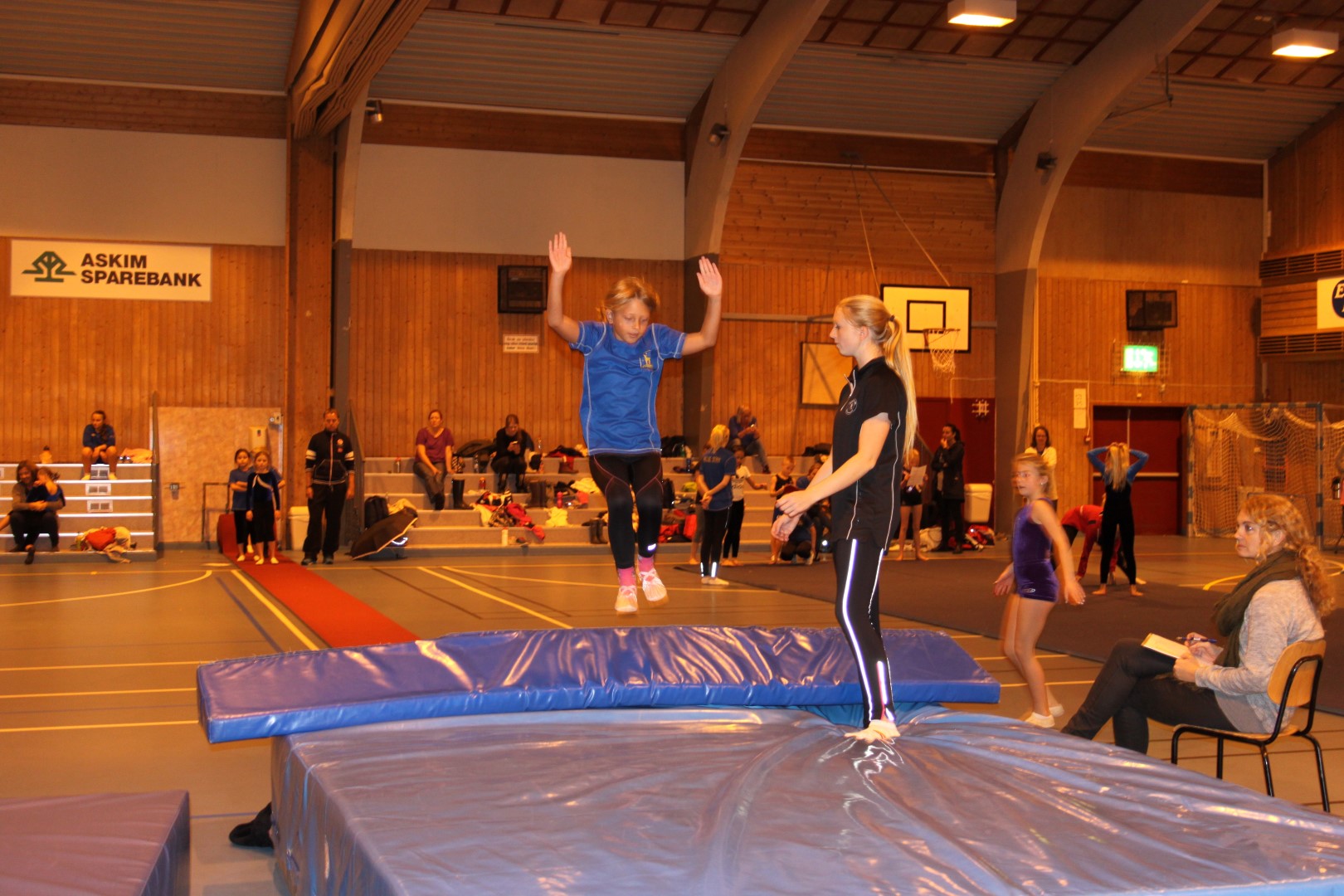 Dette var ett arrangement for barn fra 8 – 16 år. Det var 42 påmeldte utøvere, 15 trenere samt 4 styremedlemmer som var i hallen denne dagen. Vi hadde også noen ekstra foreldre som hjalp til. Vi hadde godkjenningsøvelser i Balanse, Hopp, Akrobatikk, Trampett, Balanse, Hopp, Matte og Styrke/Bevegelighet. Utøverne var veldig iherdige og prøvde seg på alle apparatene. Det ble også tid til en liten pause, hvor det ble servert frukt til alle. Vi avsluttet med at alle utøverne fikk diplom.